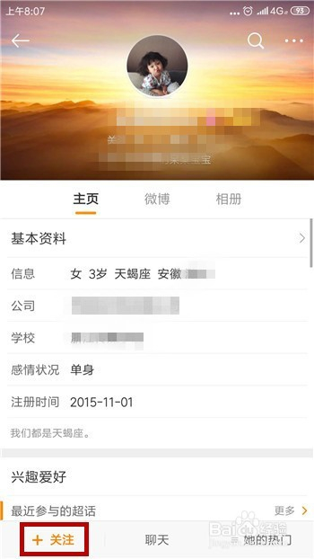 在小我本家儿页中点击左下角的【存眷】即可添加四周的报酬老友。