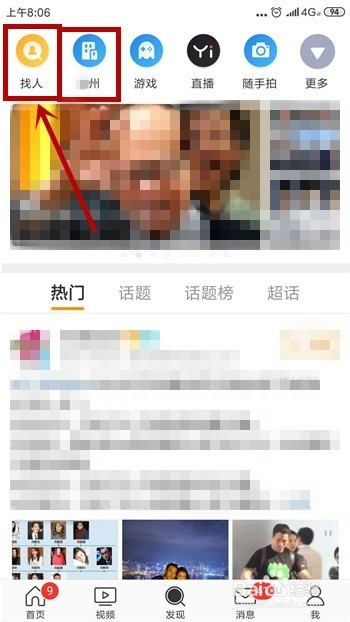 或者我们在发现界面中找到【找人】功能并点击,如图所示。