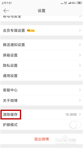 接下来在设置中就能看到【清理缓存】,点击把微博的缓存内容给清理清洁再尝尝图片是否能显示。