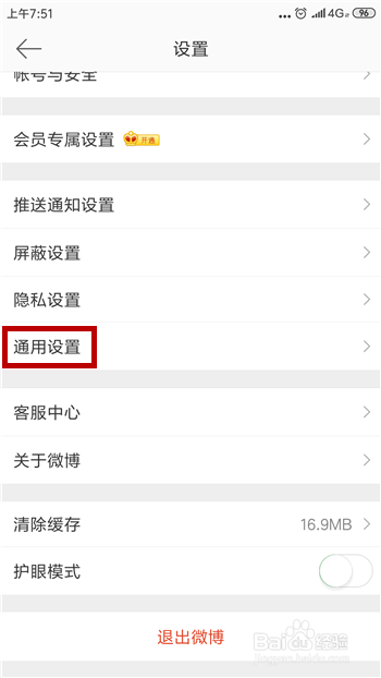 仍然是为微博的设置界面,找到【通用设置】选项后点击打开。