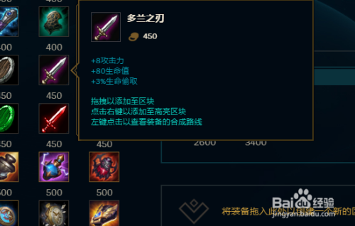 卢锡安是一个前期强势的英雄,所以出门带多兰剑打凶一点。