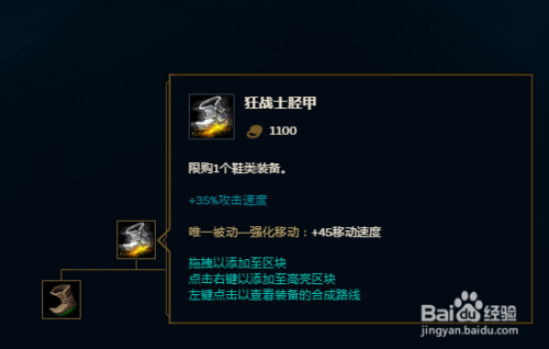 鞋子一般出攻速鞋来增添卢锡安的进犯速度和移动速度。