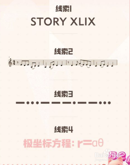 此次的线索是四个很坚苦的提醒线索,可是我们的小伙伴们可以一路推导退到哦。
