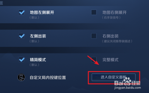 在界面设置中,选择进入自界说面板的选项。