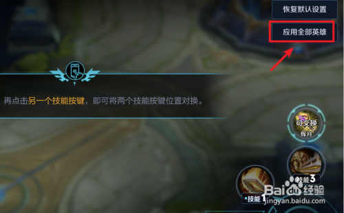 设置完毕后,也可以选择右上方的应用全数英雄的选项,将自界说按键应用所有英雄。