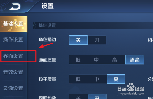 点击进入设置界面,点击左侧的界面设置的选项。