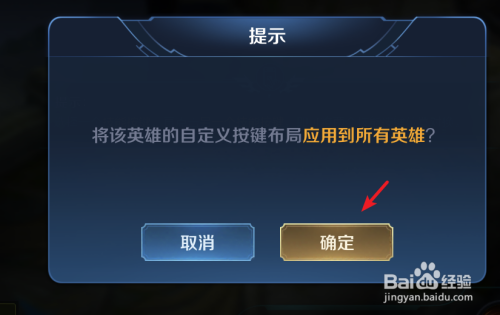 点击确定后,页面会提醒已应用所有英雄。这时,进入游戏就可以看到本身设置的自界说按键。