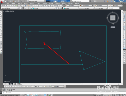点击【多段线东西】,按图示绘制出几组多段线构成枕头图案。完当作后,点击【镜像东西】对枕头图案进行镜像复制,完当作整个双人床图案的建造(如图所示);
