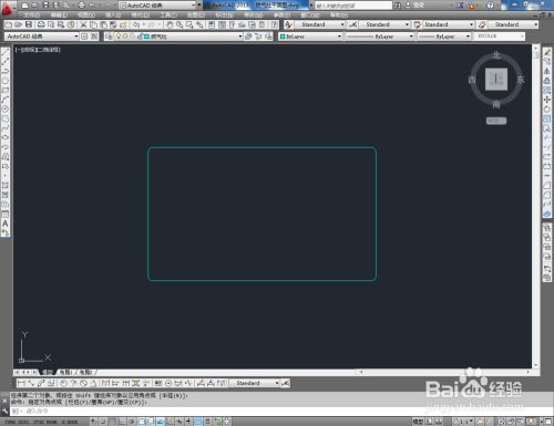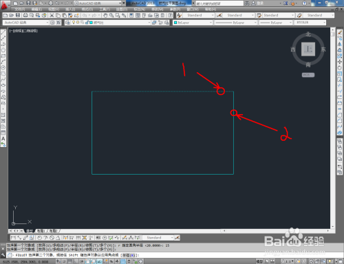 点击右边东西栏中的【圆角东西】,在号令栏中输入:r并按下空格键,继续如何数值:15并按下空格键确定,鼠标按图示拾取图案上相邻的两条线段进行圆角处置。同样的步调,完当作别的三个角的圆角处置(如图所示);