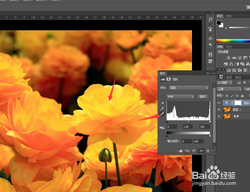 然后我们选择第1个吸管,是选择全图片中最暗的处所,然后吸收一下。
