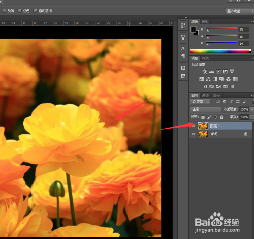 接着我们将图片素材投入到PS操作区域中,然后复制布景图层。