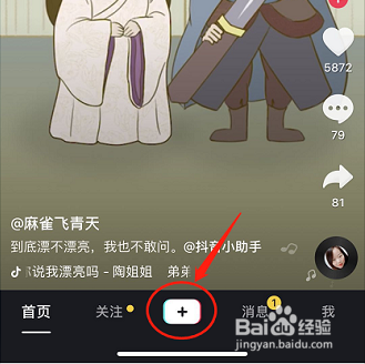 点击屏幕底端中心的“+”,进入拍摄界面;