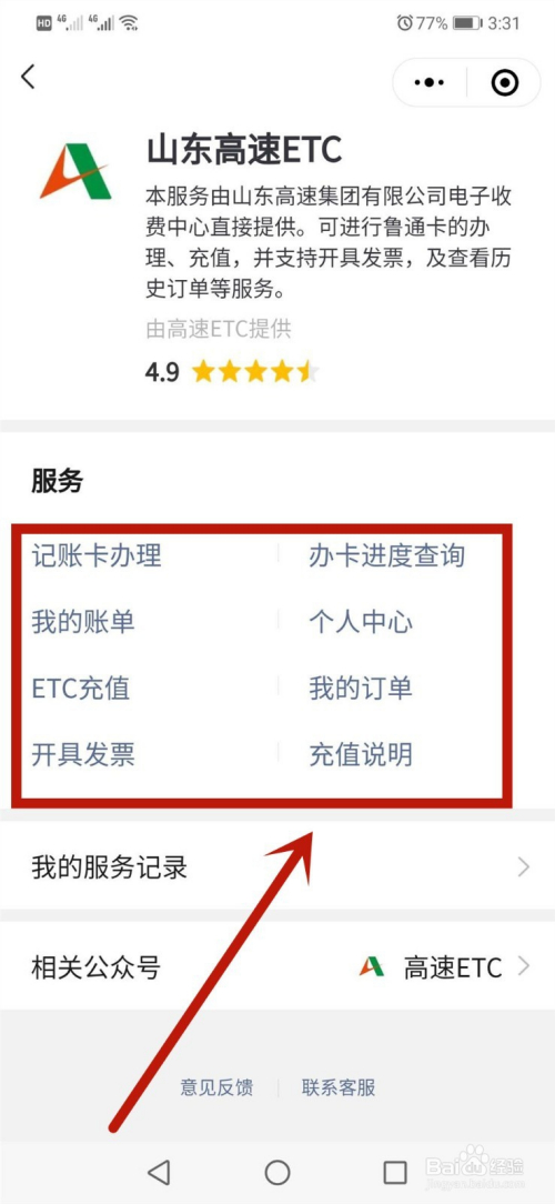 小编地点的城市是山东省,默认就进入了山东高速ETC,鄙人面的办事中,可以查询信息、打点记账卡、ETC卡充值等等。