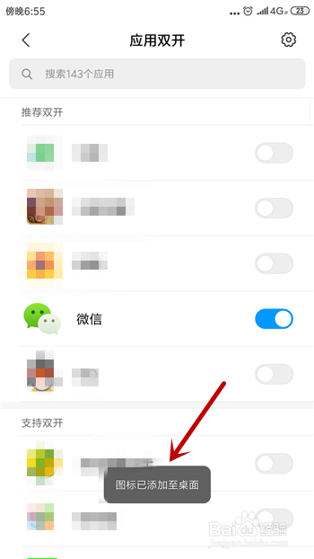 点击之后会鄙人方提醒【图标已添加至桌面】,如图所示。
