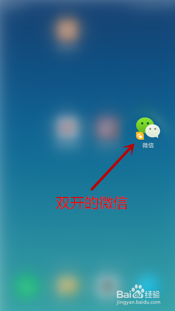 那我们就可以返回击机的桌面了,看到下方这个微信图标是我们正常利用的,继续找应用图标。
