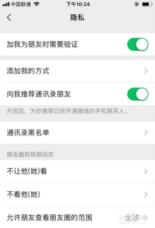 NO.4:页面跳转到隐私设置后,选择许可伴侣查看朋友圈的规模的选项进入。