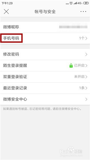 账号与平安界面中就能看到我们的手机号,点击【手机号码】。