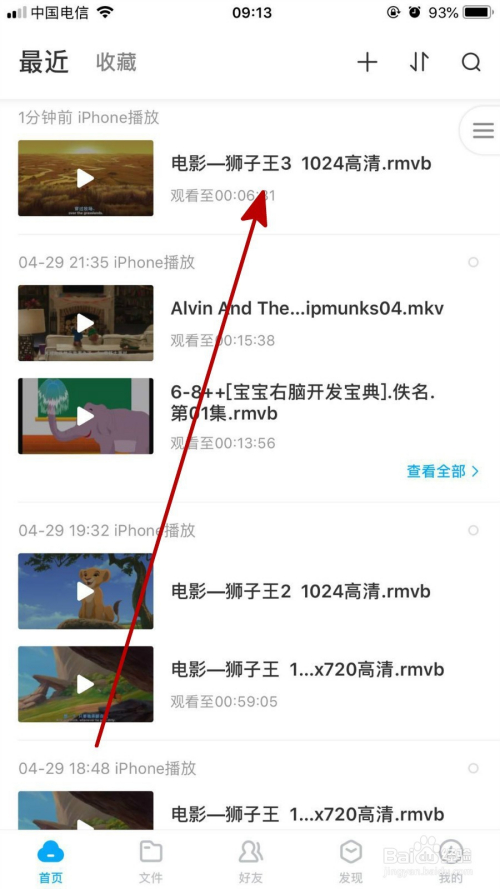 打开后在百度网盘我的资猜中找到本身需要投屏到电视播放的片子,然后点击片子进行播放,如下图