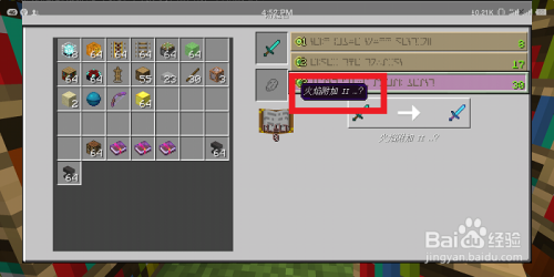 然后,我们可以在兵器的右边看到三条看不懂的火星文。点击我们可以或许看到它的翻译意思,选择本身想要进行附魔的属性,然后,点击下方的按钮即可。