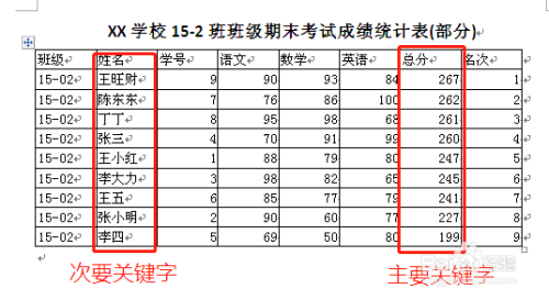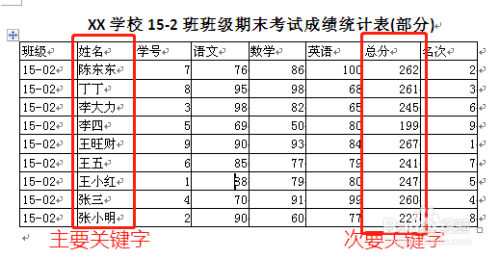 对Word中表格的排序可以按照数字、拼音、笔划和日期进行排序。也可以按照多个前提进行排序,可以选择次要关头字、第三关头字等。