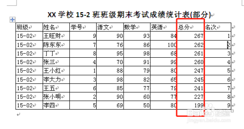 此刻表格中的总分已经从大到小进行了排序。