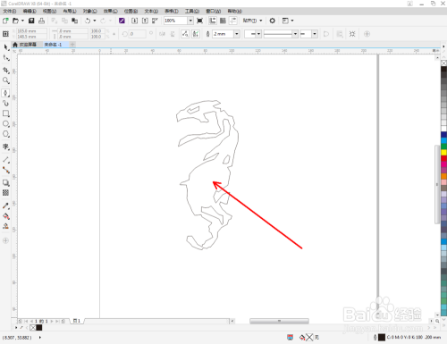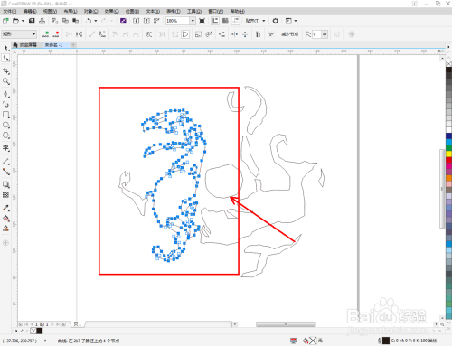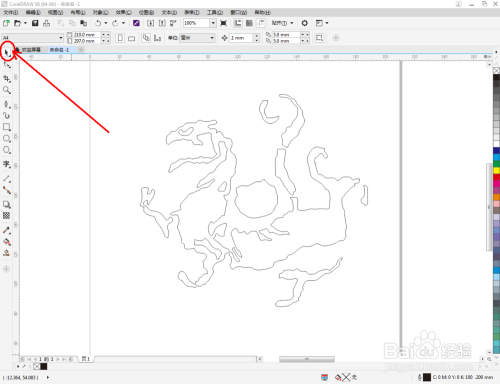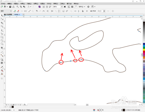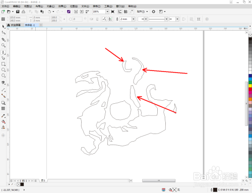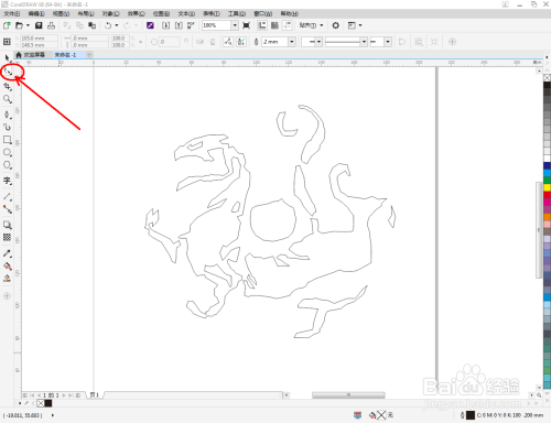 选中多边图案,点击【外形东西】,选中图案上的所有点,点击【转换为曲线】将图案转曲后,按图示调整节制点,完当作整个白虎轮廓图案的绘制(如图所示);