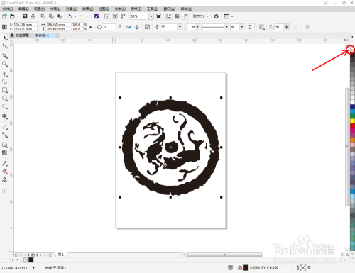 点击【选择东西】,框选所有图案并将所有图案归并为一体后,选中归并好的图案,鼠标左键点击右边色板中的黑色色块,将图案填充为黑色(如图所示);