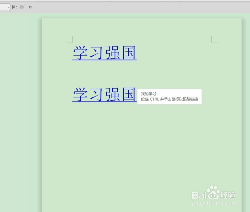 如下图,文中有“学习强国”超等链接,当我们利用“Ctrl”并点击时,就会打开“学习强国”页面。