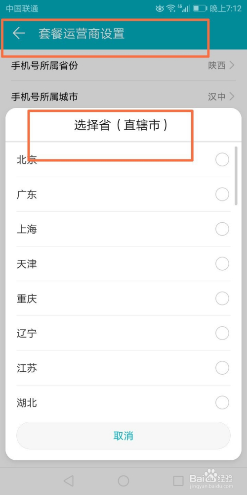紧接着可以看到套餐运营商设置,我们选择好地点的地域即可;
