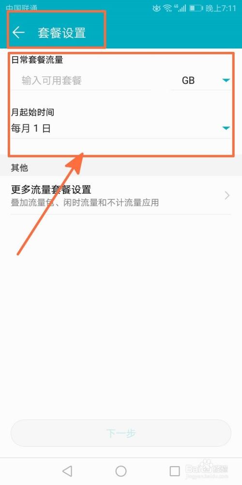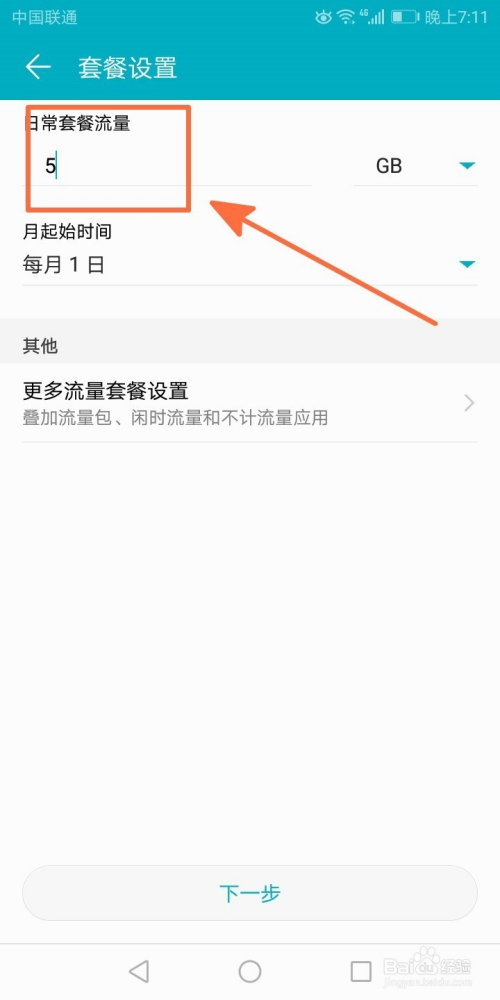接着输入套餐流量的总数和月肇端时候;
