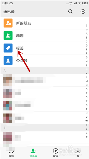 接着在通信录中就能看到分类【标签】,点击打开微信的标签。
