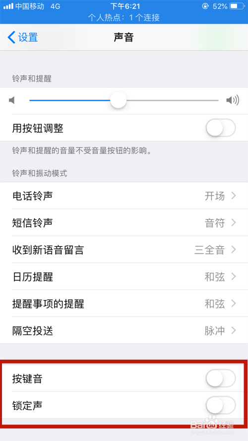 若是手机的按键音和锁定声都没有声音的话,那么在当前页面拉到最下面,将“按键音”和“锁定声”的声音打开即可