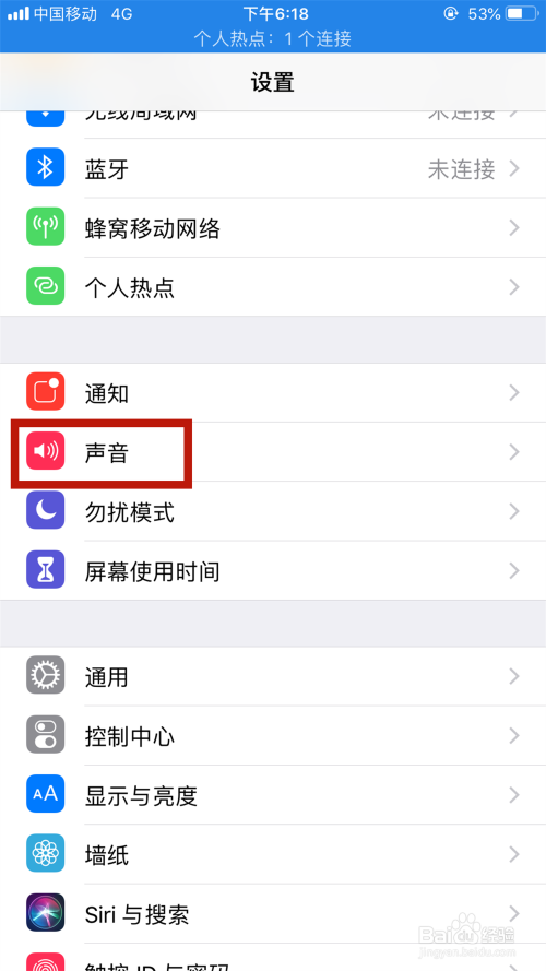 点击设置里的“声音”