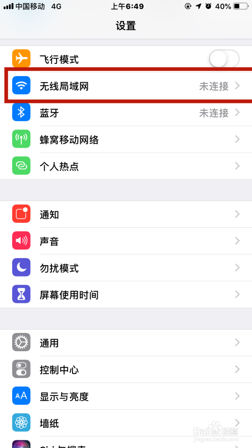 打开手机设置,接着在手机设置界面找到【无线局域网】