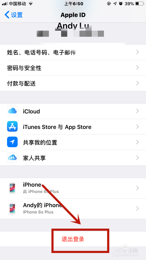 下拉界面点击底端的退出登录