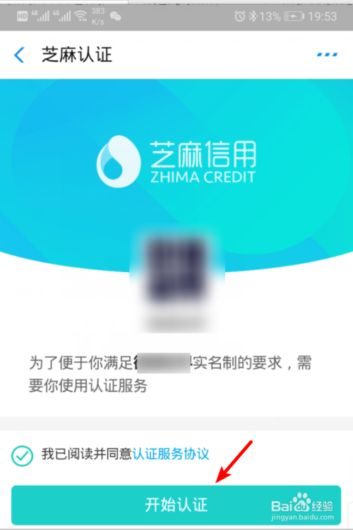 点击后会打开手机的支付宝跳转到芝麻信用的界面,选择下方的起头认证选项。