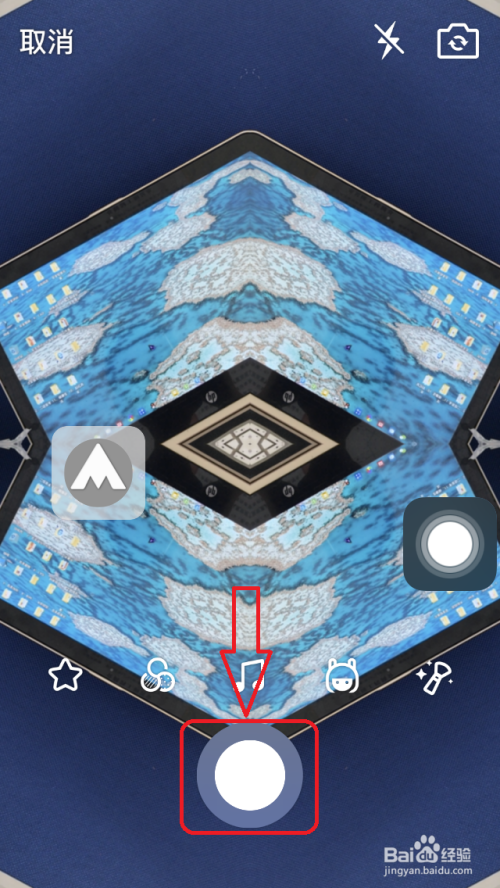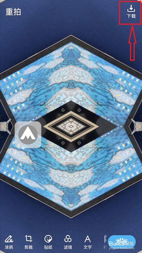 瞄准方针,点击“拍摄按钮”,即可拍摄出“万花筒结果”的照片,点击右上角“下载”,即可将照片保留至手机相册。