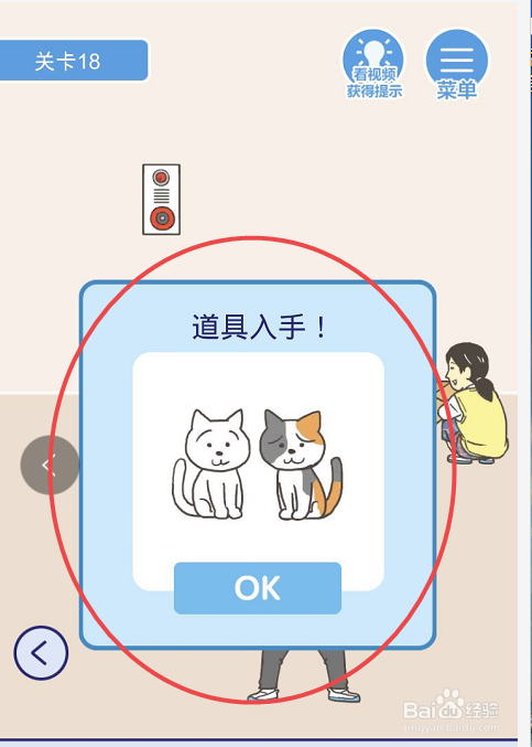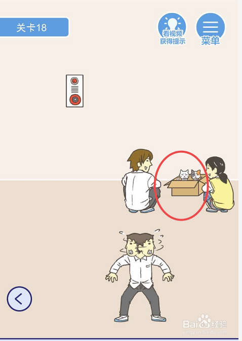 在右侧的地图内,可以看见纸箱子内有两只小猫,点击小猫。