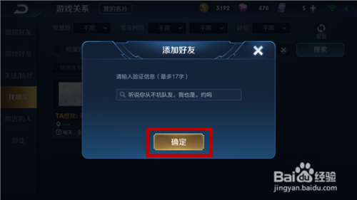 加老友需要我们填写验证信息,填写好后点击【确定】。