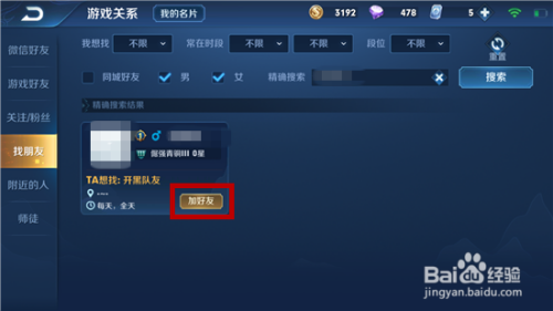 ID查找游戏玩家的话只会呈现一个,究竟结果游戏的ID都是纷歧样的,然后搜刮到该游戏玩家后点击【加老友】。
