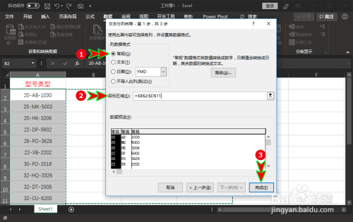 确认拆分没问题后,继续点击“下一步”按钮,然后选择我们要将数据拆分为什么格局,要将拆分的数据放在哪里,最后点击“完当作”按钮即可。