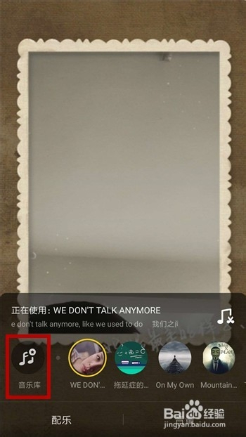 这个视频还需要配一个相关的母亲音乐,在编纂界面点击右上角的【选音乐】。
