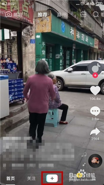 这个视频的特效就是抖音自带的,打开抖音后点击底部的【+】。