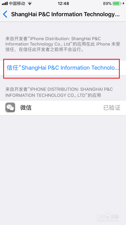 进入到设备办理的界面,选择适才微信的描述文件,点击此中的信赖选项。
