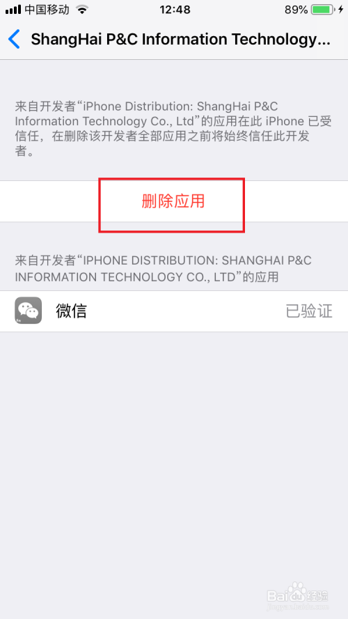 选择了信赖之后,就会酿成了删除应用的选项,这个时辰就可以返回到桌面了,然后微信兼顾版也就可以利用了。