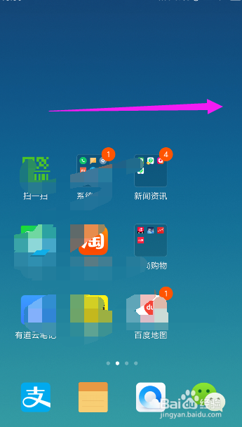 然后,标的目的右滑脱手机屏幕,一向滑到屏幕最左端,如图所示