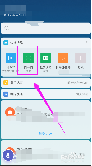 然后,就会在手机桌面看到有个微信扫一扫的选项,如图所示