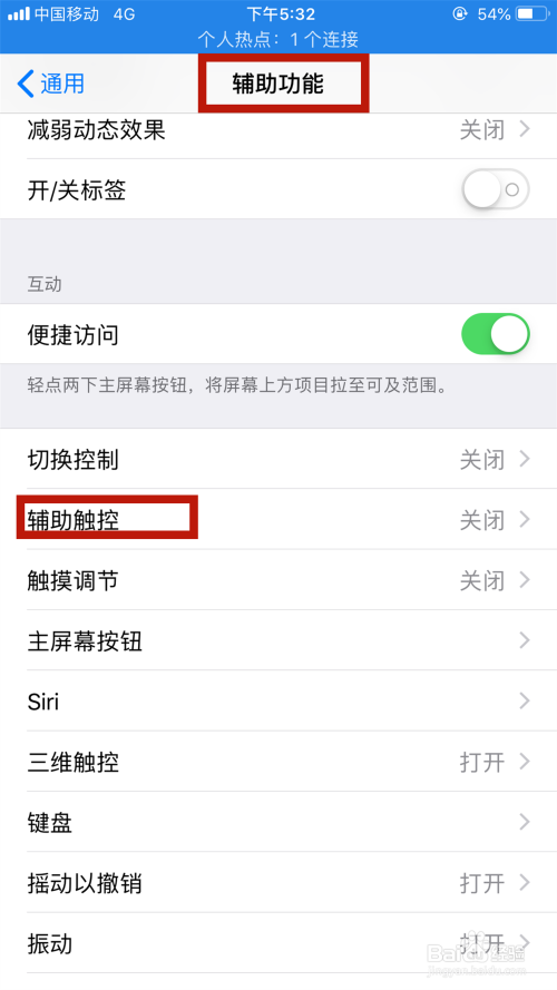 点击通用页面的“辅助功能”,点击“辅助触控”