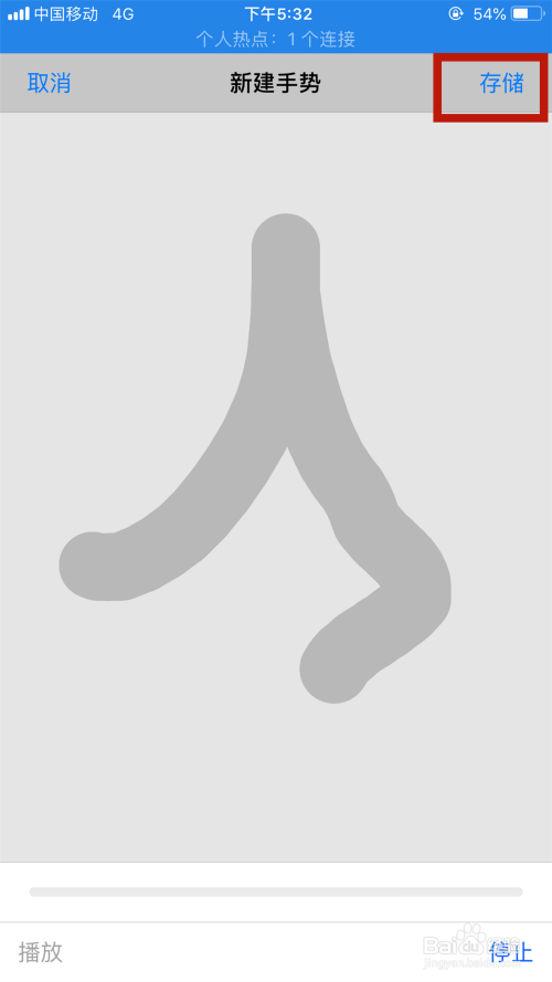 建立新手势后,点击“存储”即可,这样就设置了“手势锁屏密码”