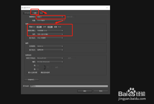 在“新建序列”点击“设置”选项卡,将“编纂模式”改为“自界说”,参数设置如下
